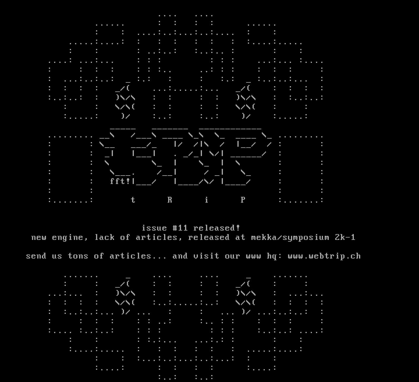 send us tons of articles... and visit our www hq: www.webtrip.ch