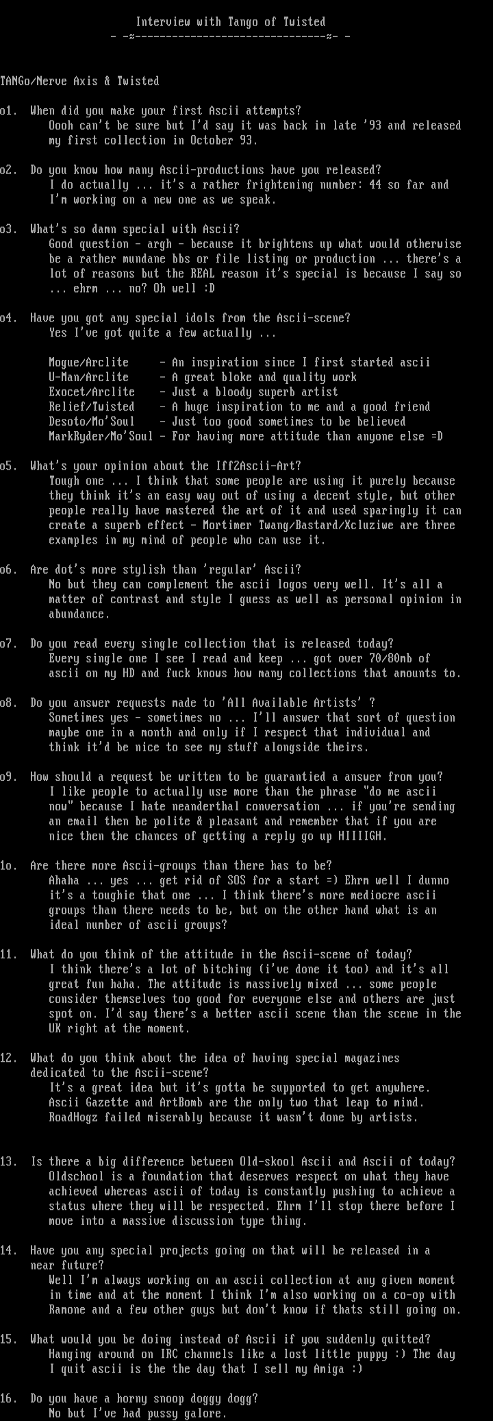 11. What do you think of the attitude in the Ascii-scene of today?