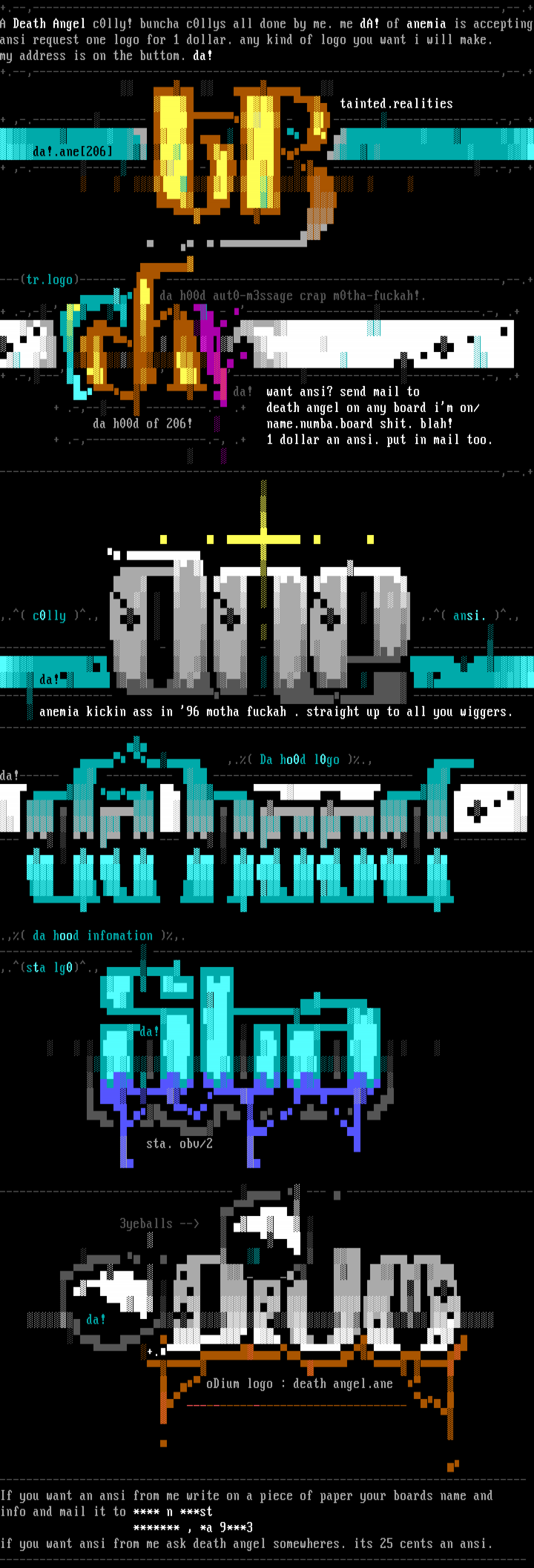 +.--,----------------------------------------------------------------------,--.+A Death Angel c0lly! buncha c0llys all done by me. me dA! of anemia is acceptingansi request one logo for 1 dollar. any kind of logo you want i will make.