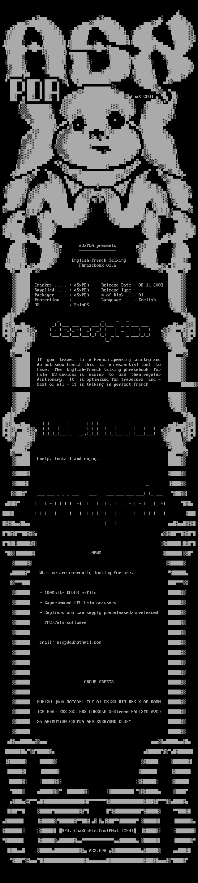 Cracker ......: aSxPDA Release Date : 08-14-2003