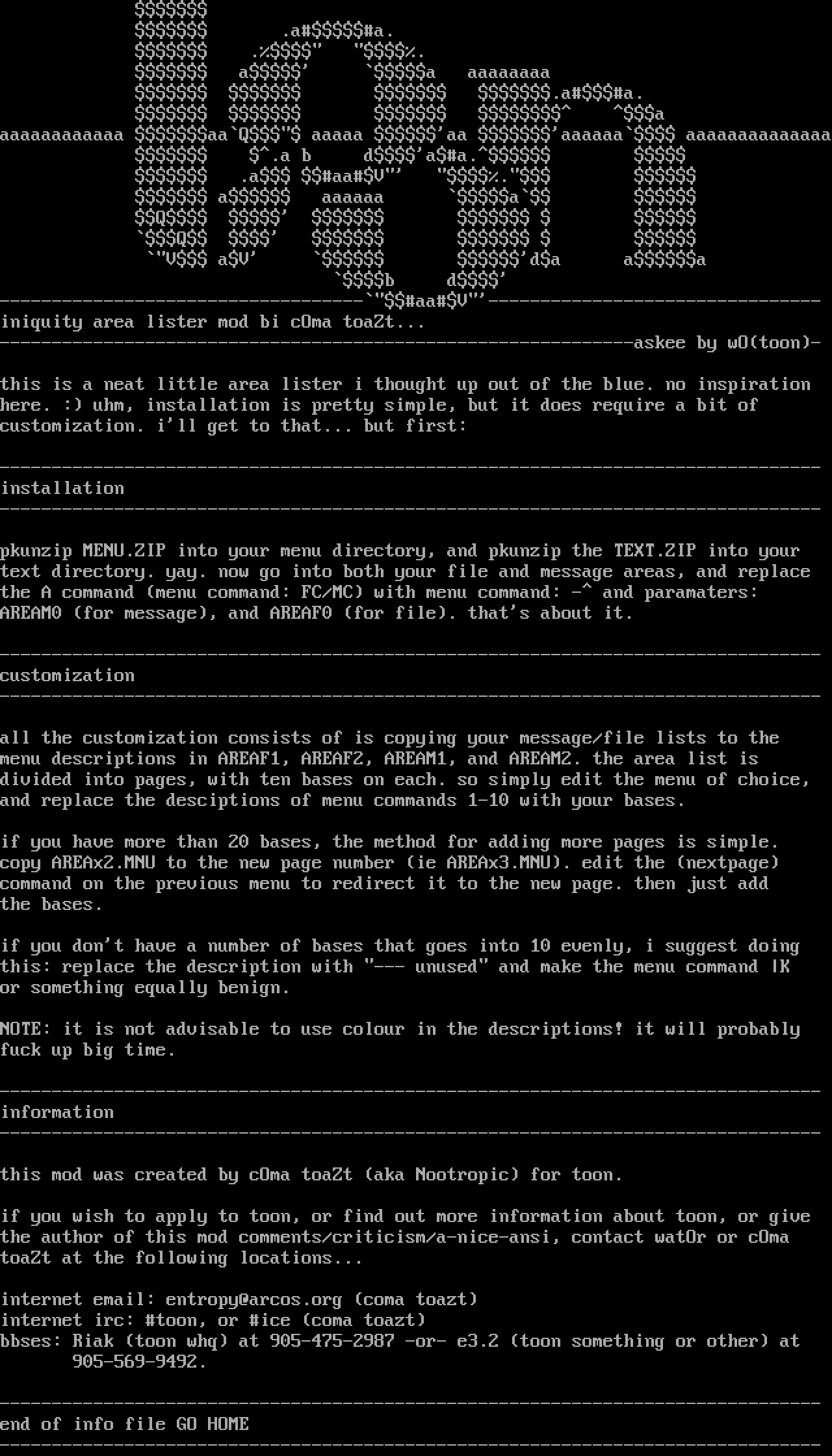 the author of this mod comments/criticism/a-nice-ansi, contact watOr or cOma
