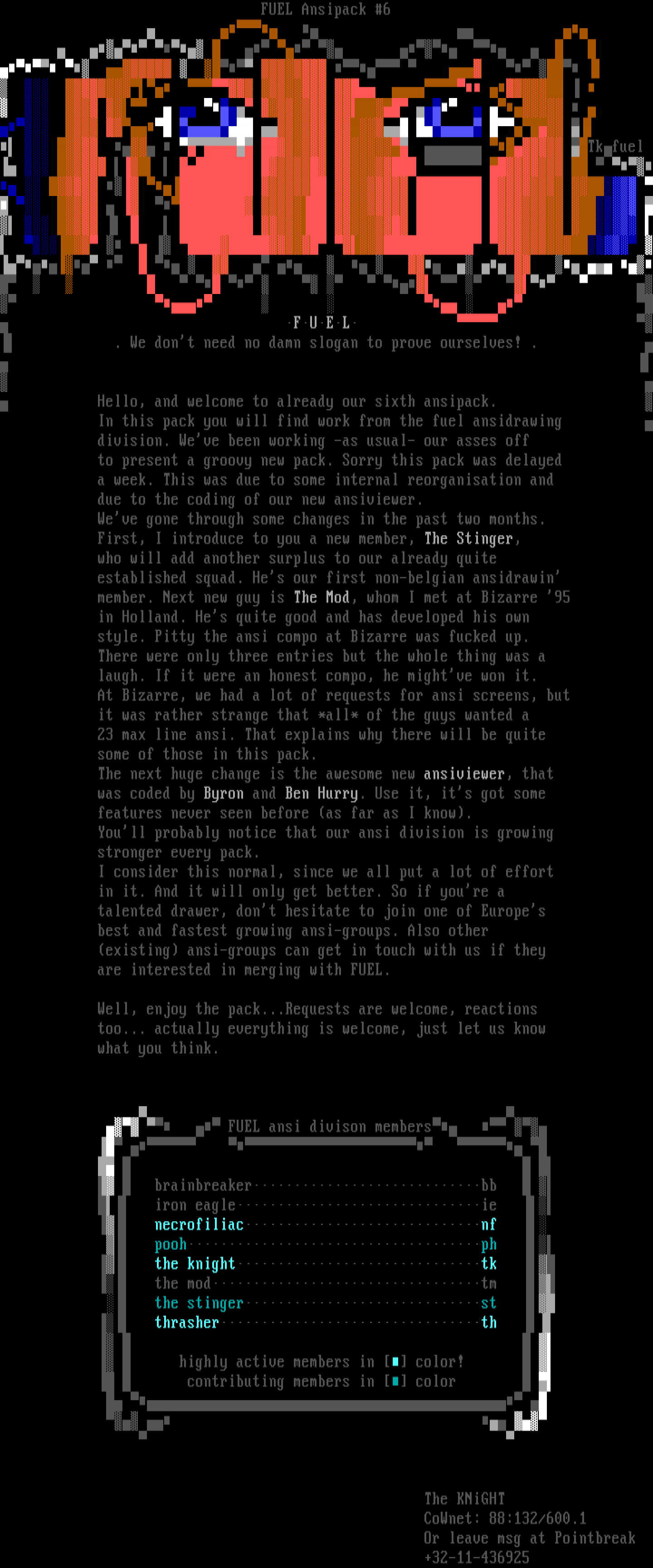 FUEL . We dont need no damn slogan to prove ourselves! . Hello, and welcome to already our sixth ansipack. In this pack you will find work from the fuel ansidrawing division. Weve been working -as usual- our asses off