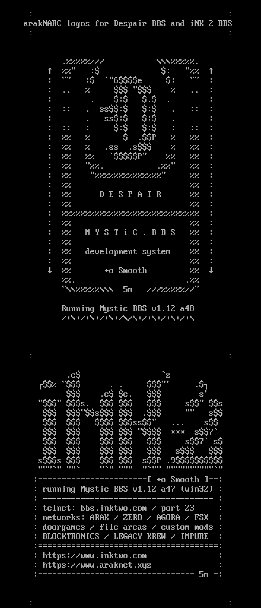 arakNARC logos for Despair BBS and iNK 2 BBS