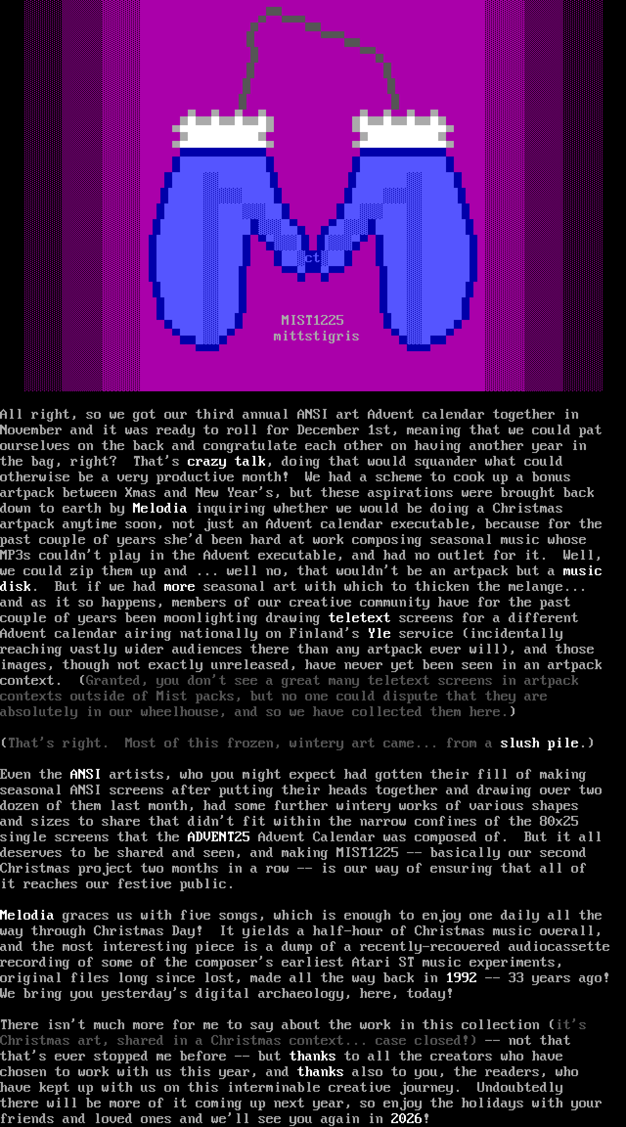 All right, so we got our third annual ANSI art Advent calendar together in