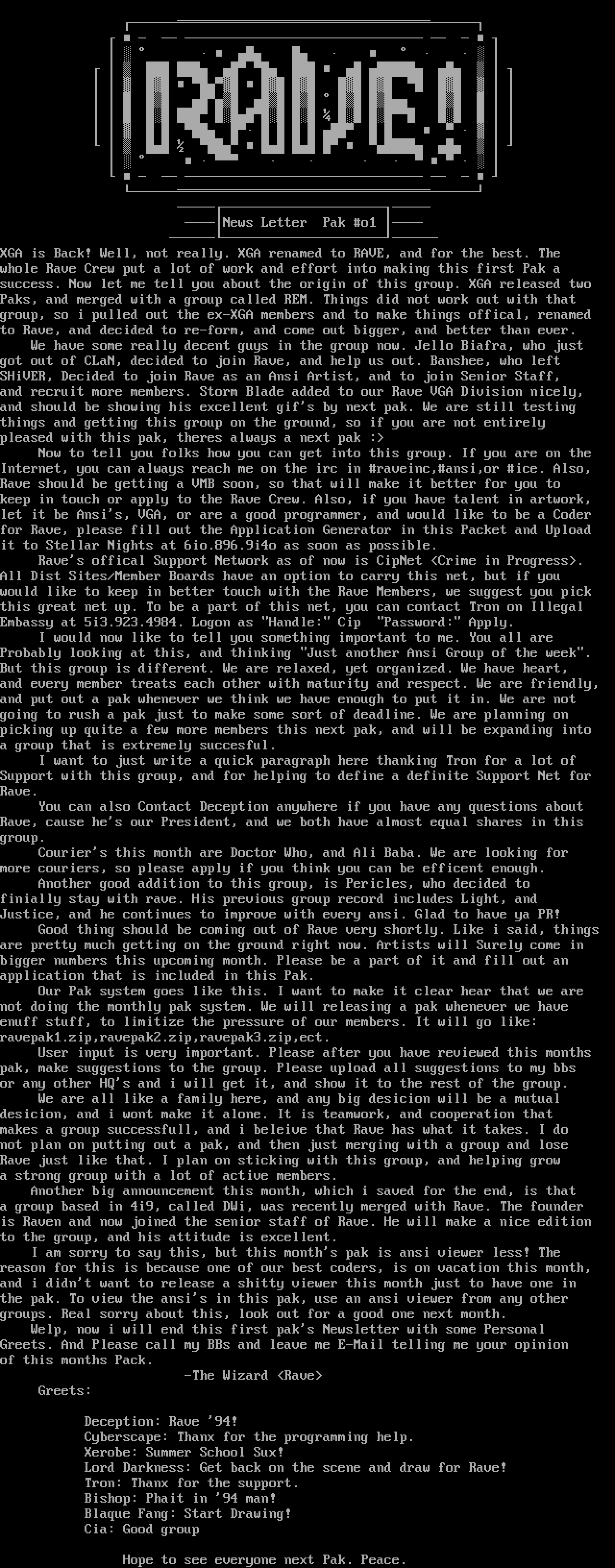 keep in touch or apply to the Rave Crew. Also, if you have talent in artwork,